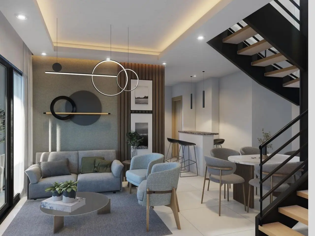 ✔ Cocina modular con tope de cuarzo y desayunador